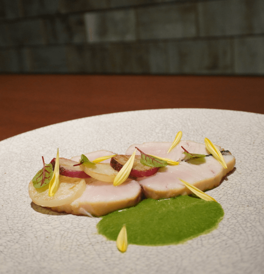 | 前菜 | 宮崎県産まるみ豚のローストポーク 群馬県産下仁田ネギのグリル |